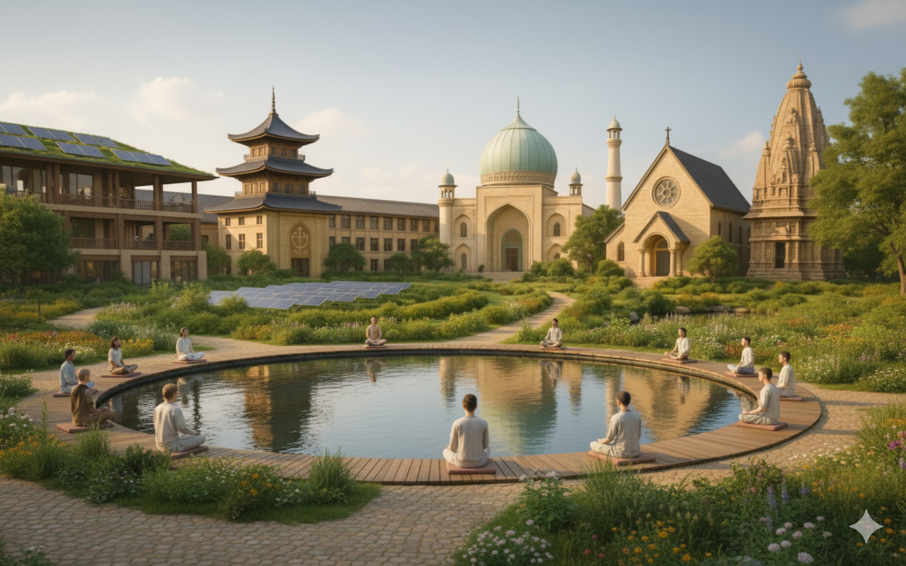 This 100-acre eco-spiritual university will feature spiritual, academic, and research zones, integrating modern technologies with ancient wisdom to create a model for future education worldwide.